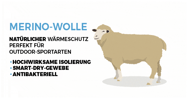 Der Thermo-Baselayer (160 g/m²) besteht aus einem Materialmix aus Merinowolle und SmartDry-Fasern. Merinowolle bietet eine optimale Isolierung und hemmt die Geruchsbildung. SmartDry-Fasern machen den Baselayer strapazierfähig und transportieren Feuchtigkeit nach außen ab.